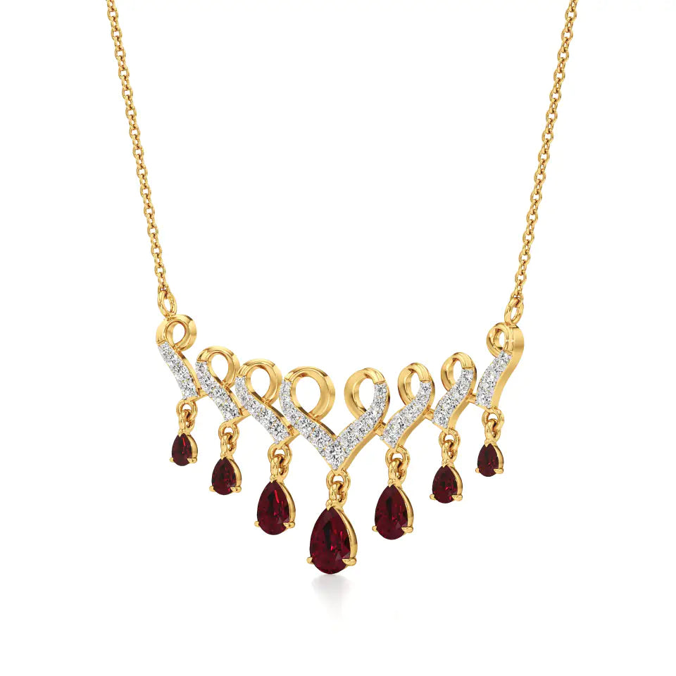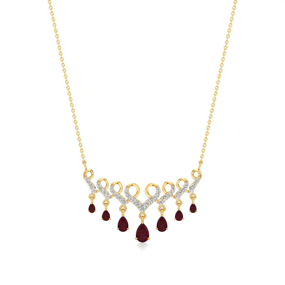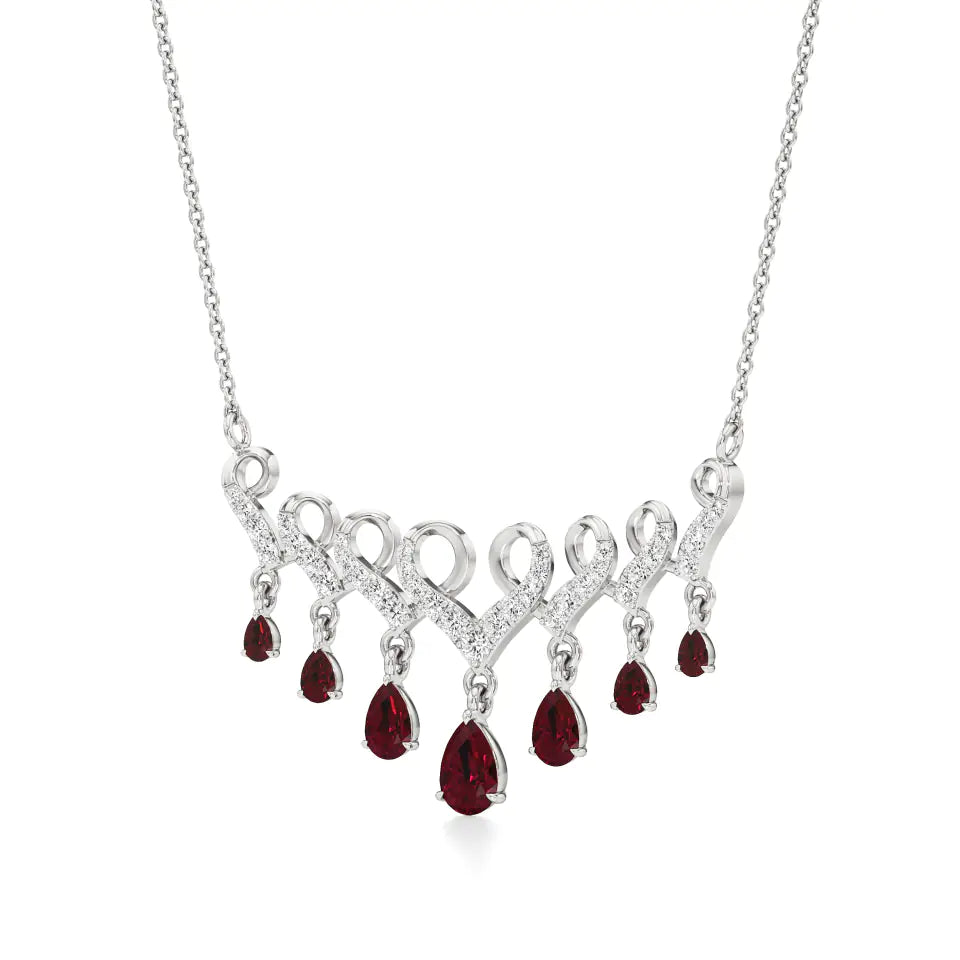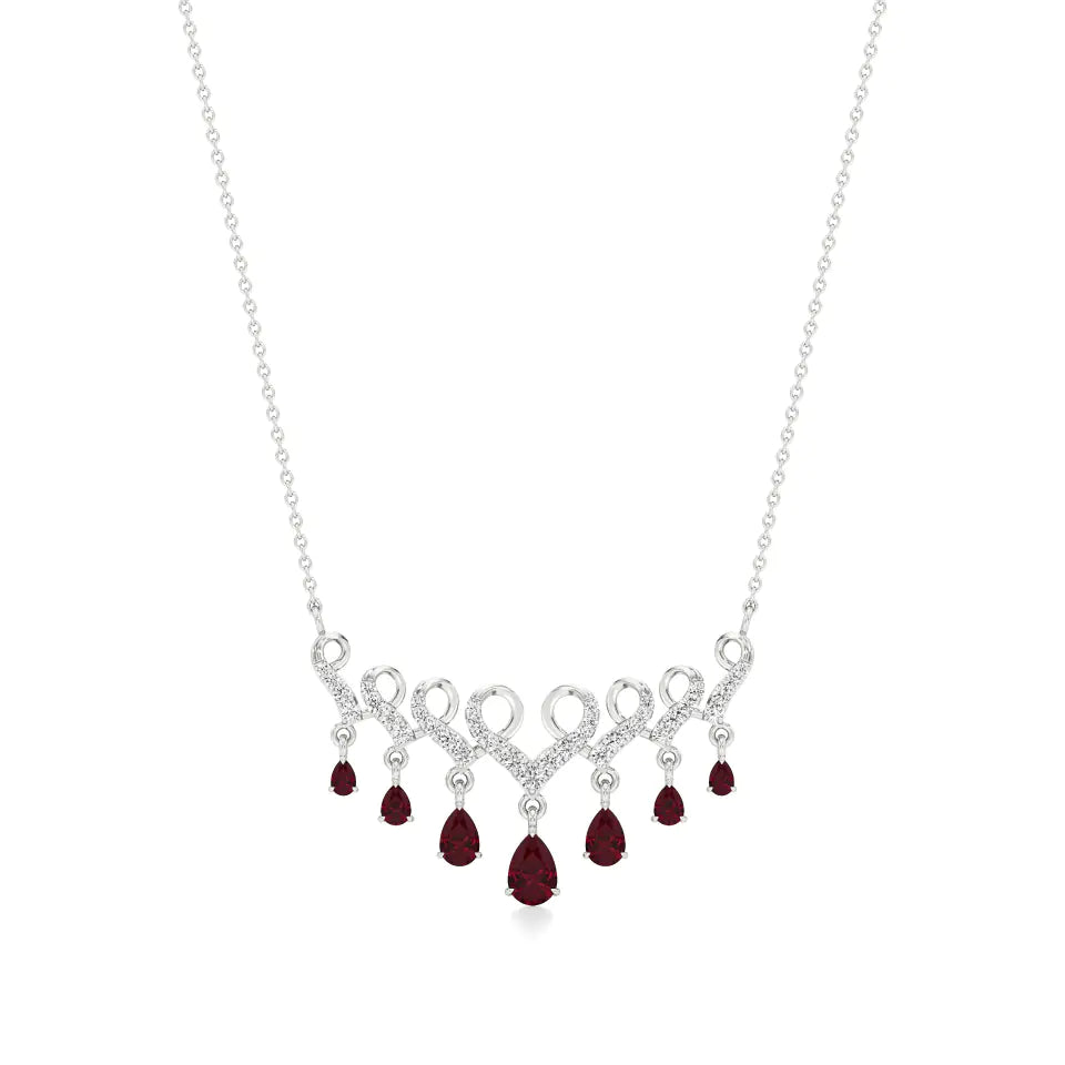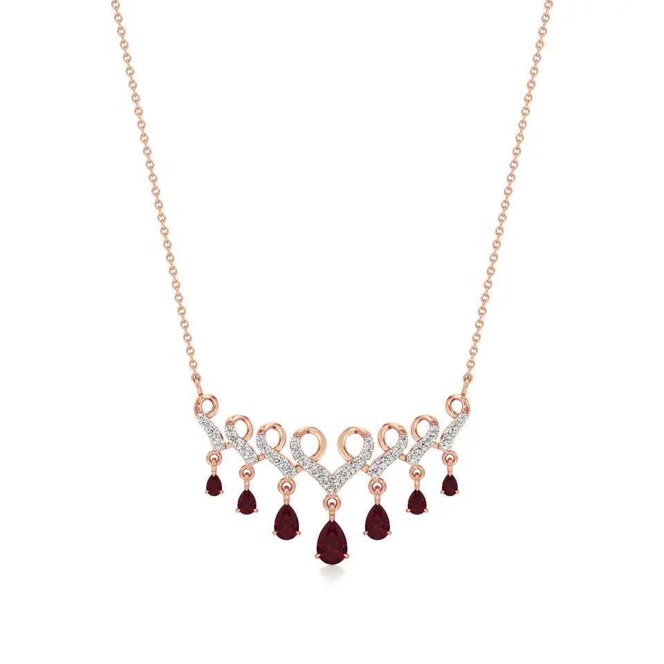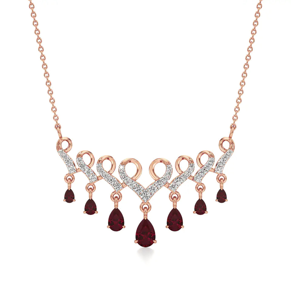 Anek | Round Lab Grown Diamonds & Pear-Cut Rubies Pendant - Buy Lab Grown Diamond Jewellery Online in India