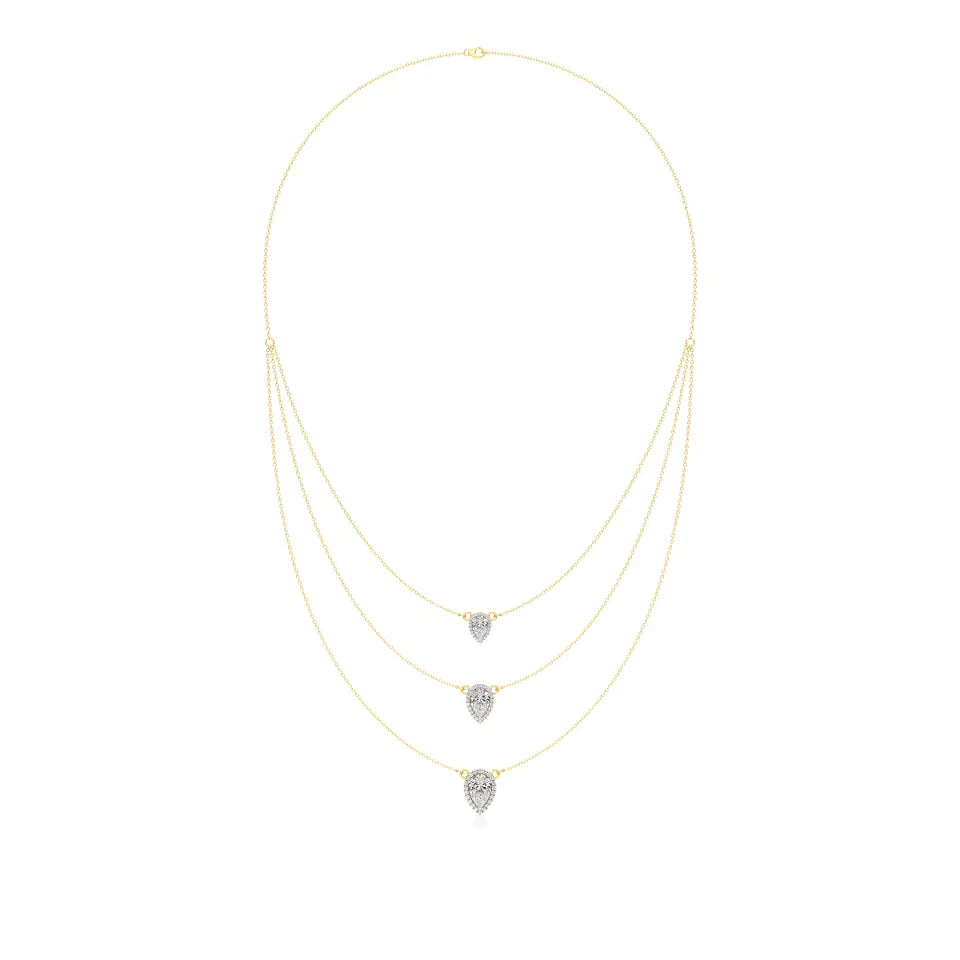 Elara | Pear Lab Grown Diamonds with Halo Triple Chained Necklace - Buy Lab Grown Diamond Jewellery Online in India
