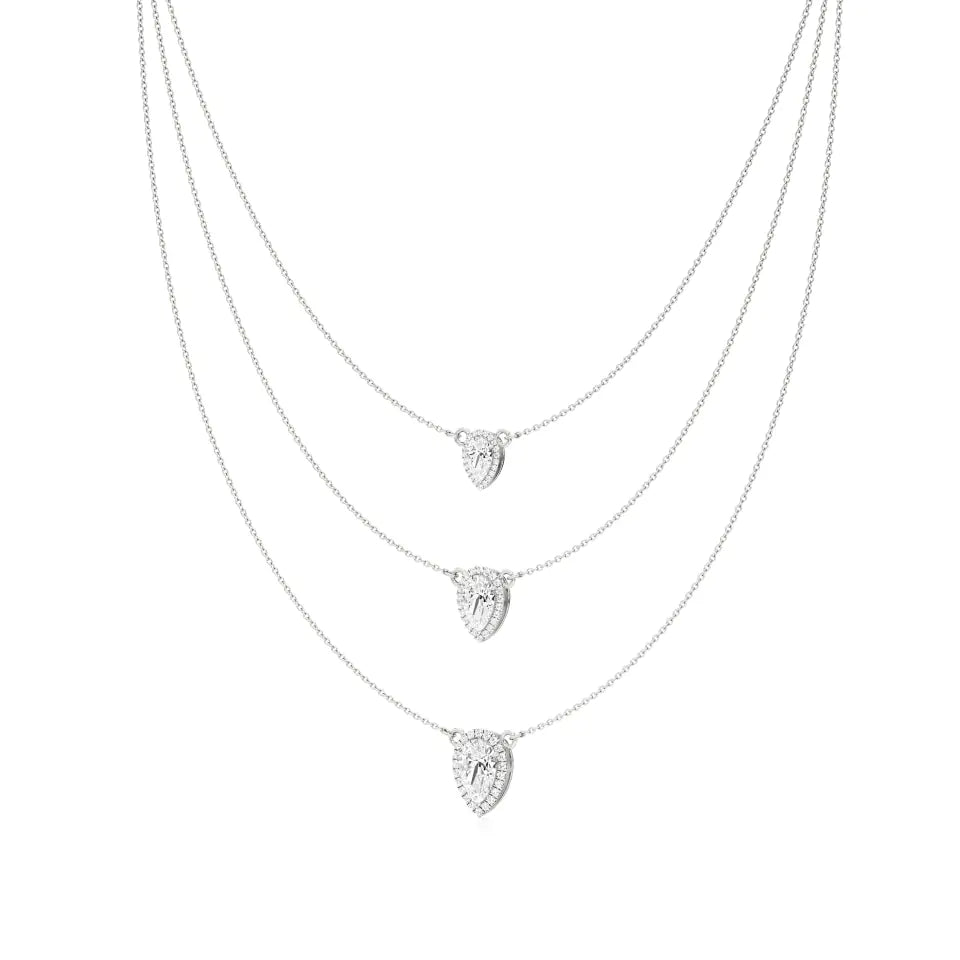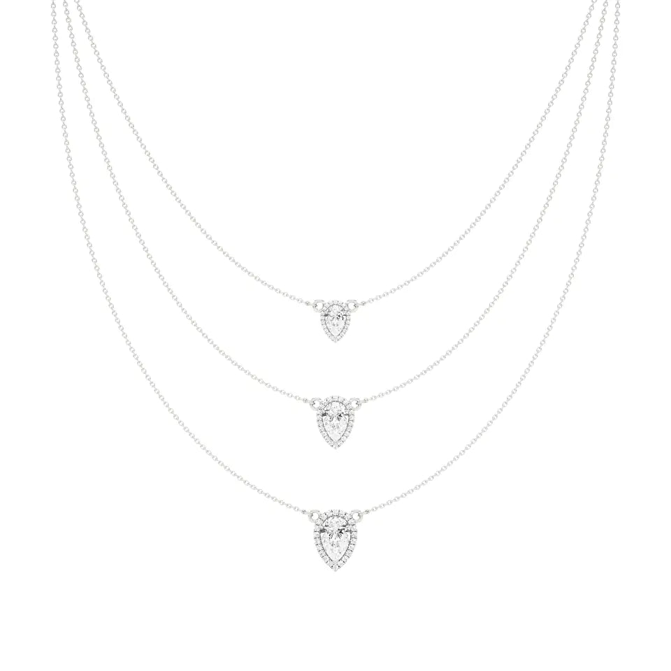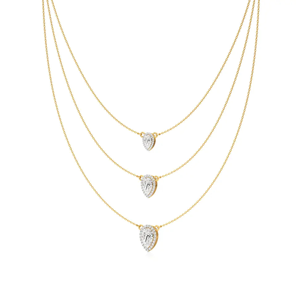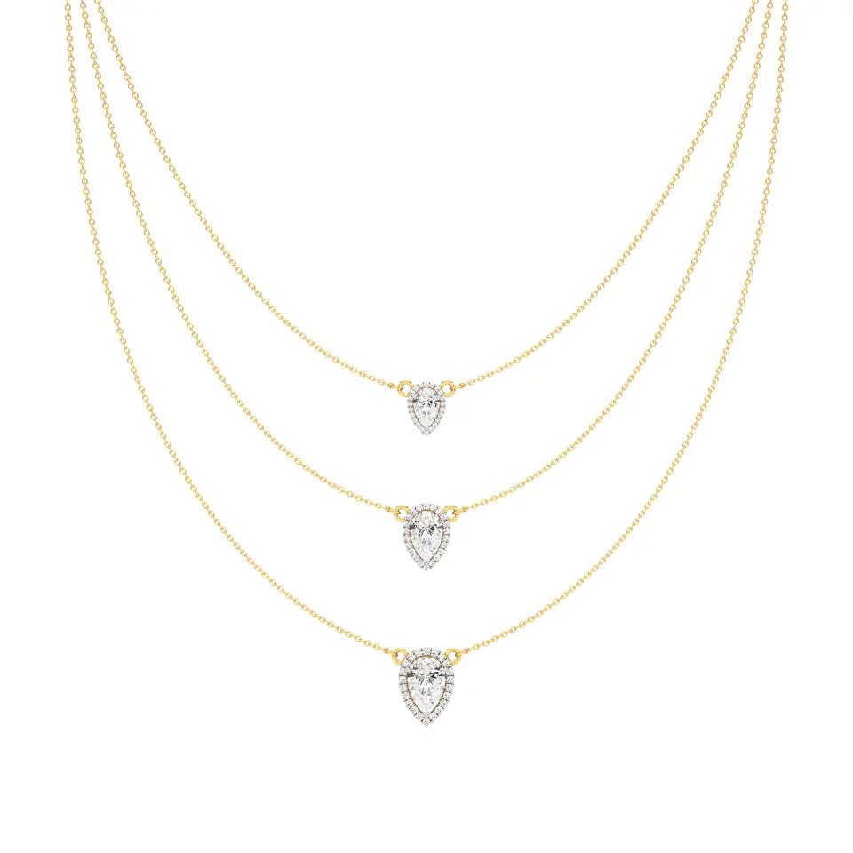 Elara | Pear Lab Grown Diamonds with Halo Triple Chained Necklace