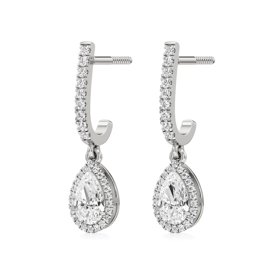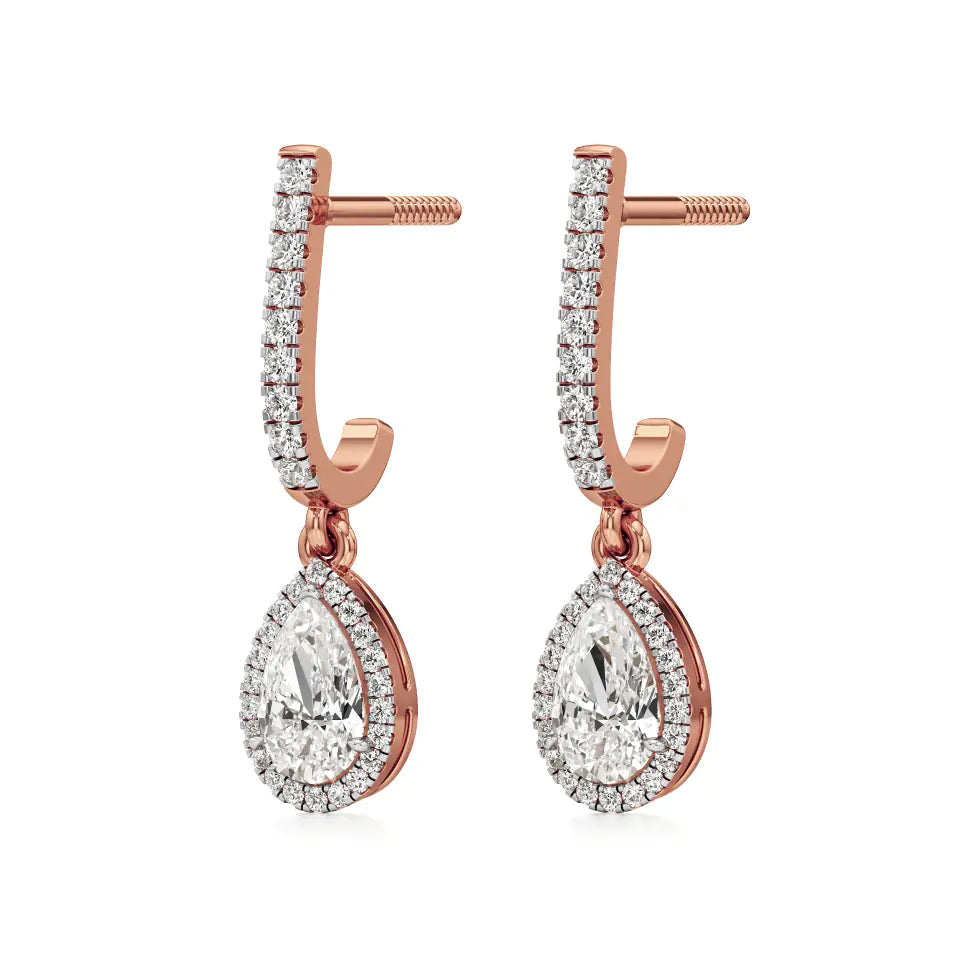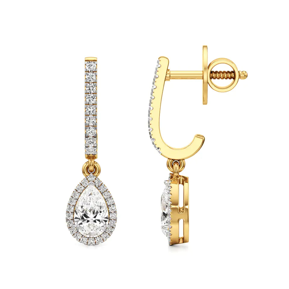 Amaya | Pear & Round Lab-Grown Diamond Halo Dangle Earrings - Buy Lab Grown Diamond Jewellery Online in India