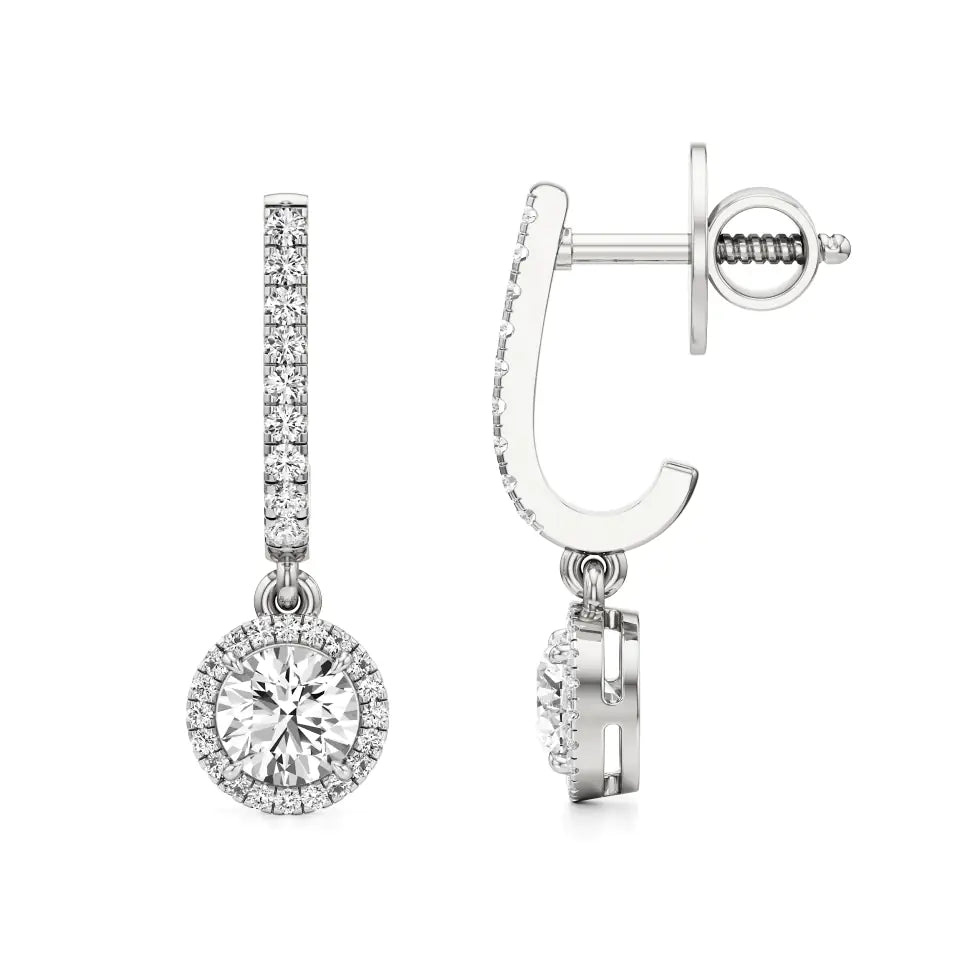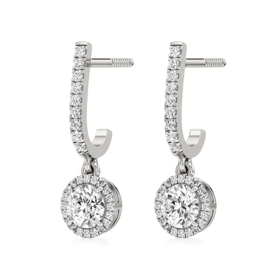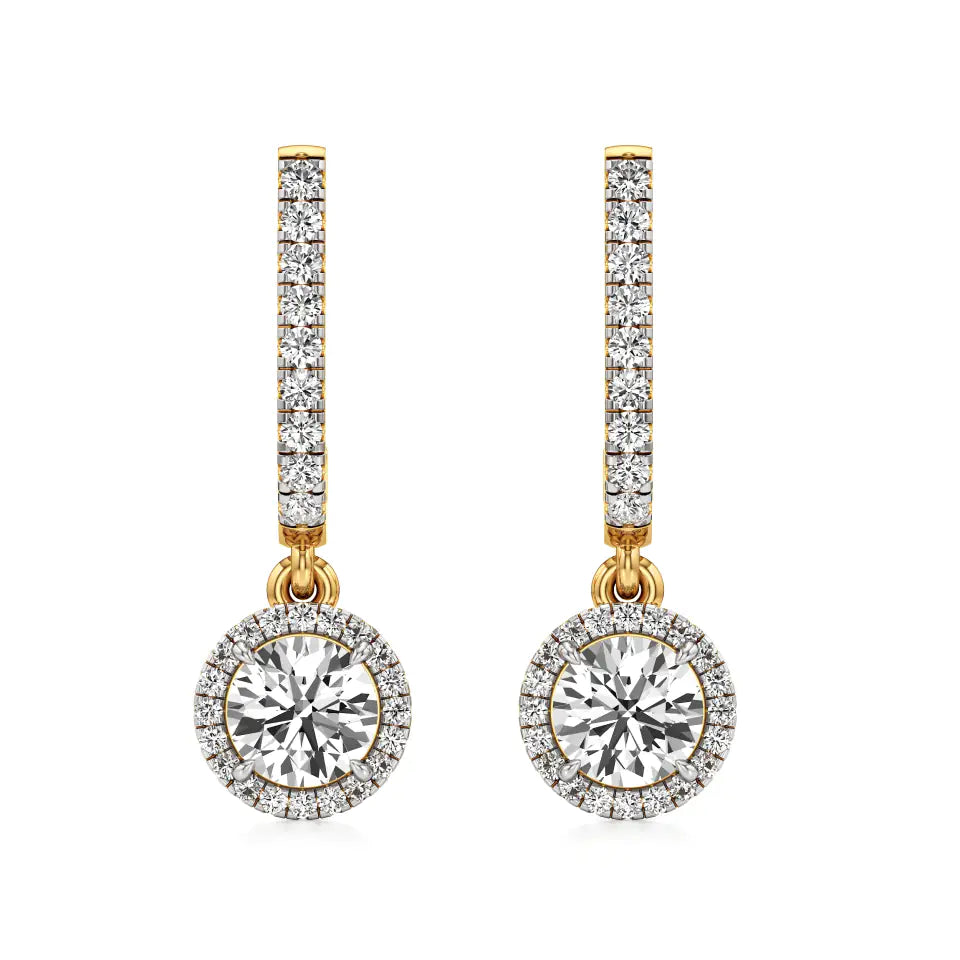 Amaya | Round Lab-Grown Diamond Halo Dangle Earrings - Buy Lab Grown Diamond Jewellery Online in India