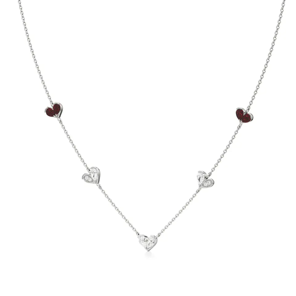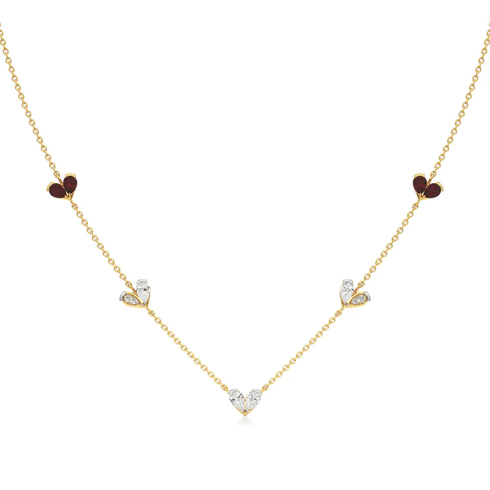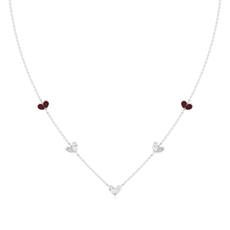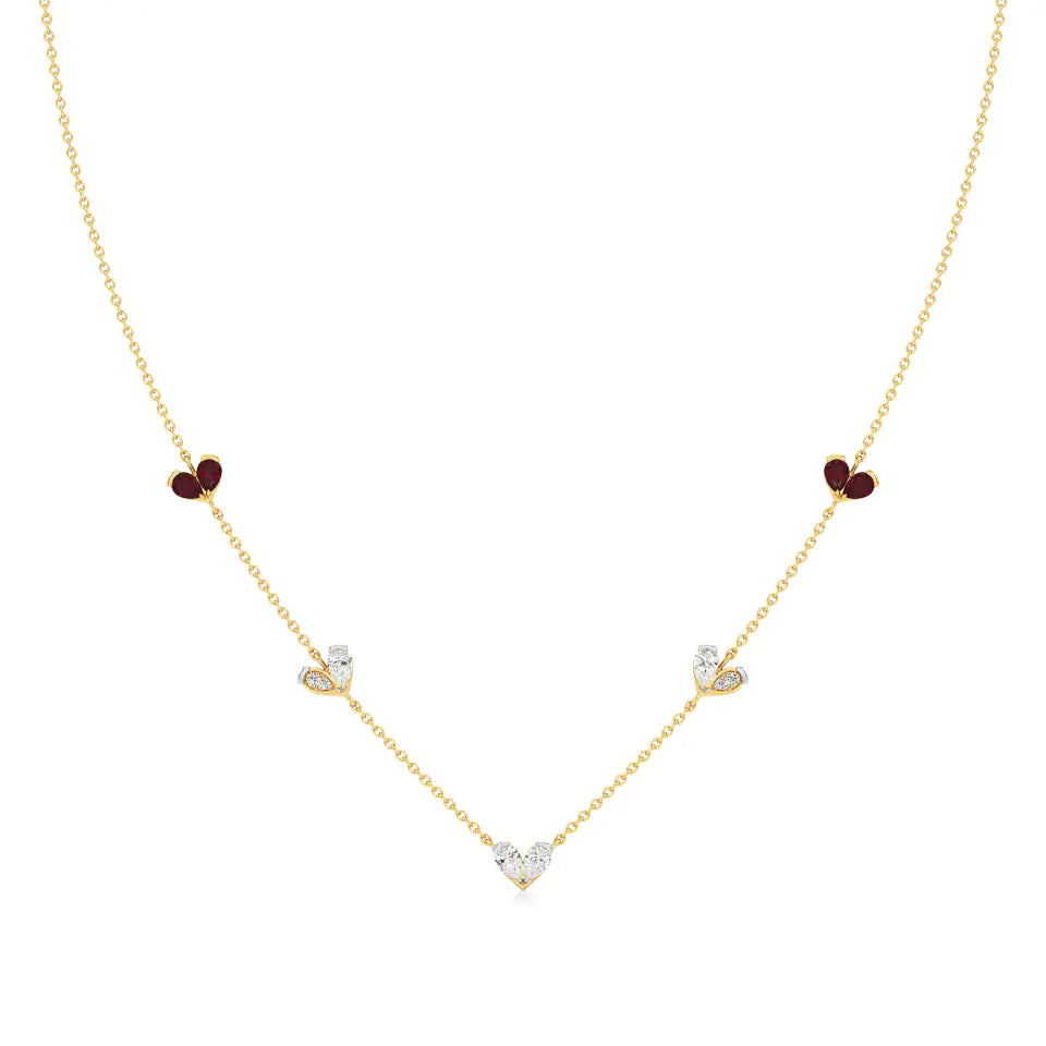 Sneh | Pear-Cut Ruby & Lab Grown Diamonds Heart Motif Necklace