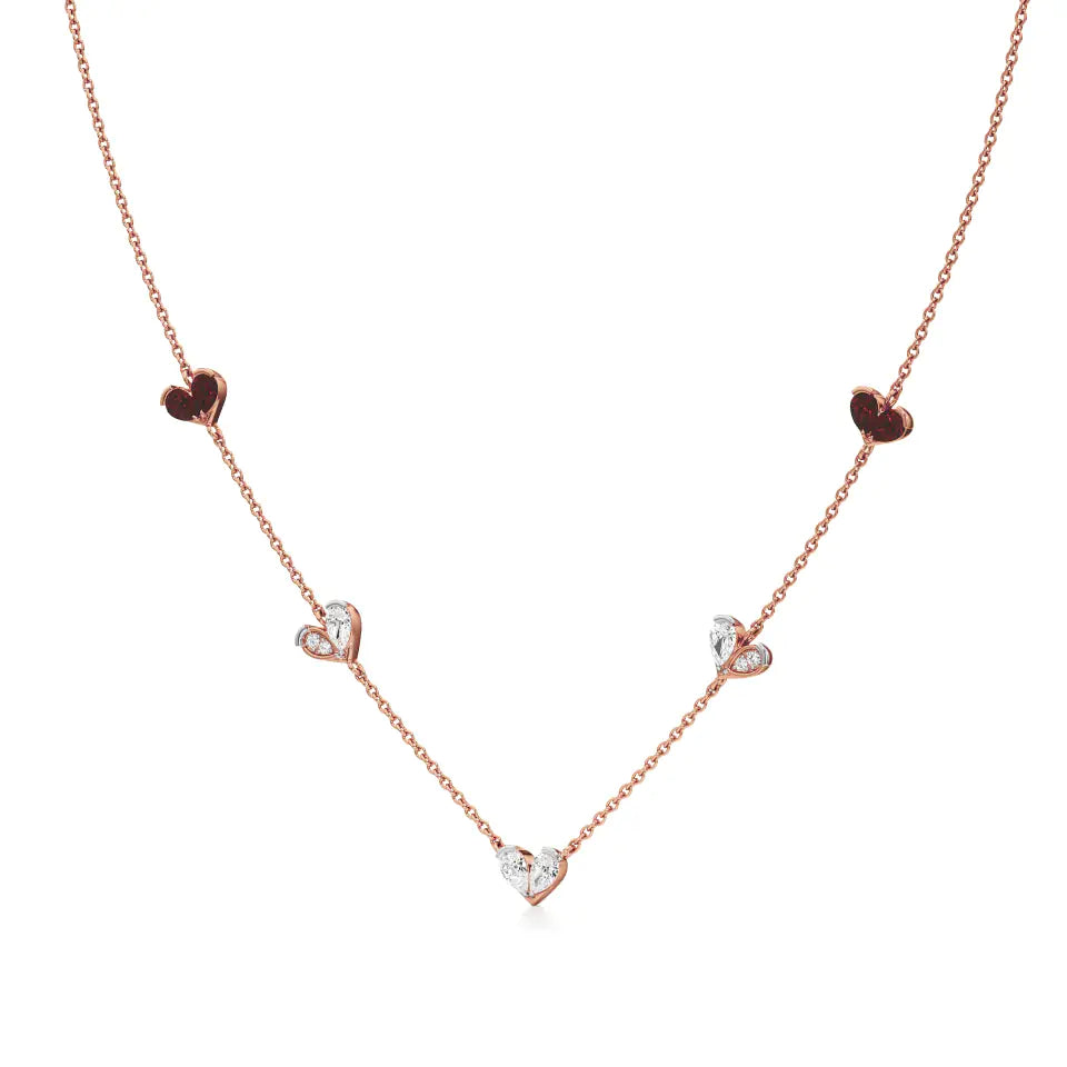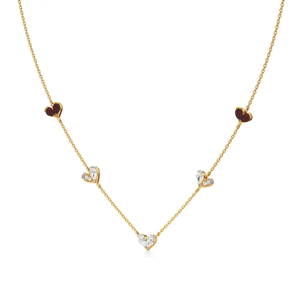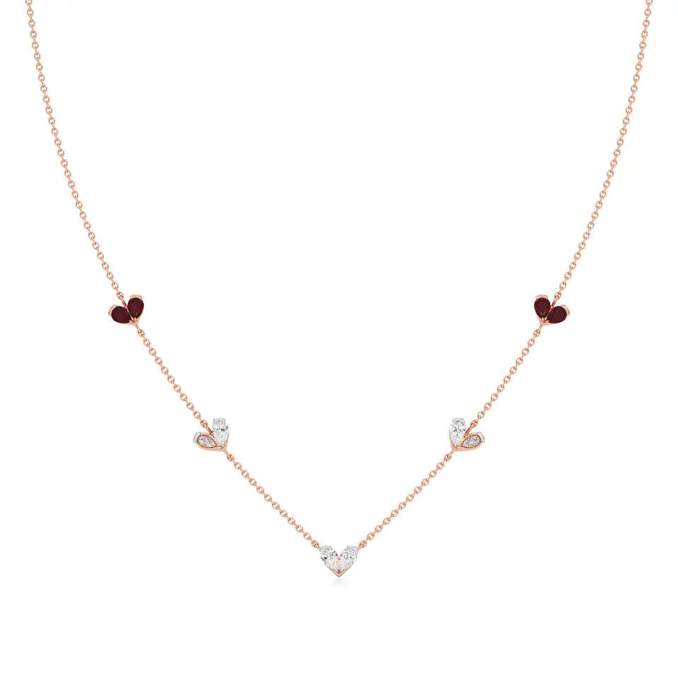Sneh | Pear-Cut Ruby & Lab Grown Diamonds Heart Motif Necklace - Buy Lab Grown Diamond Jewellery Online in India