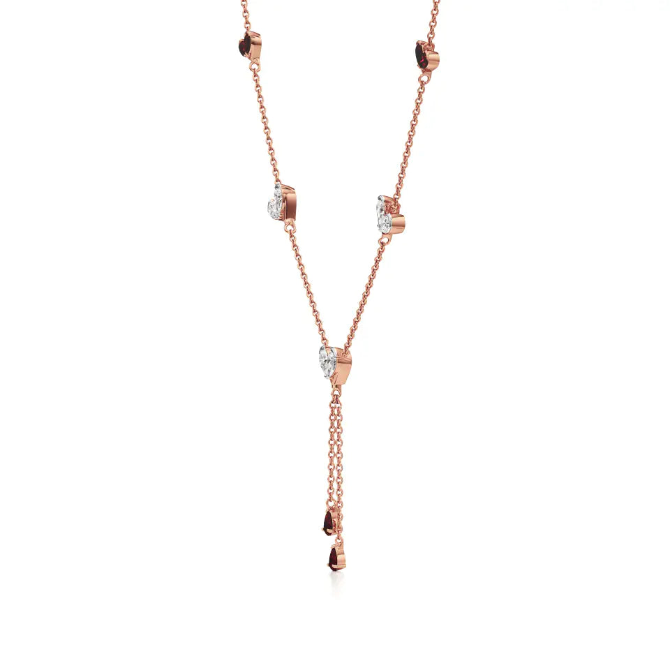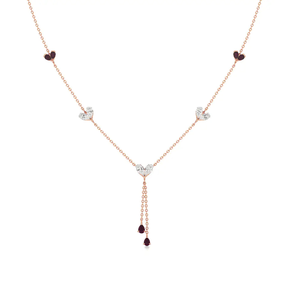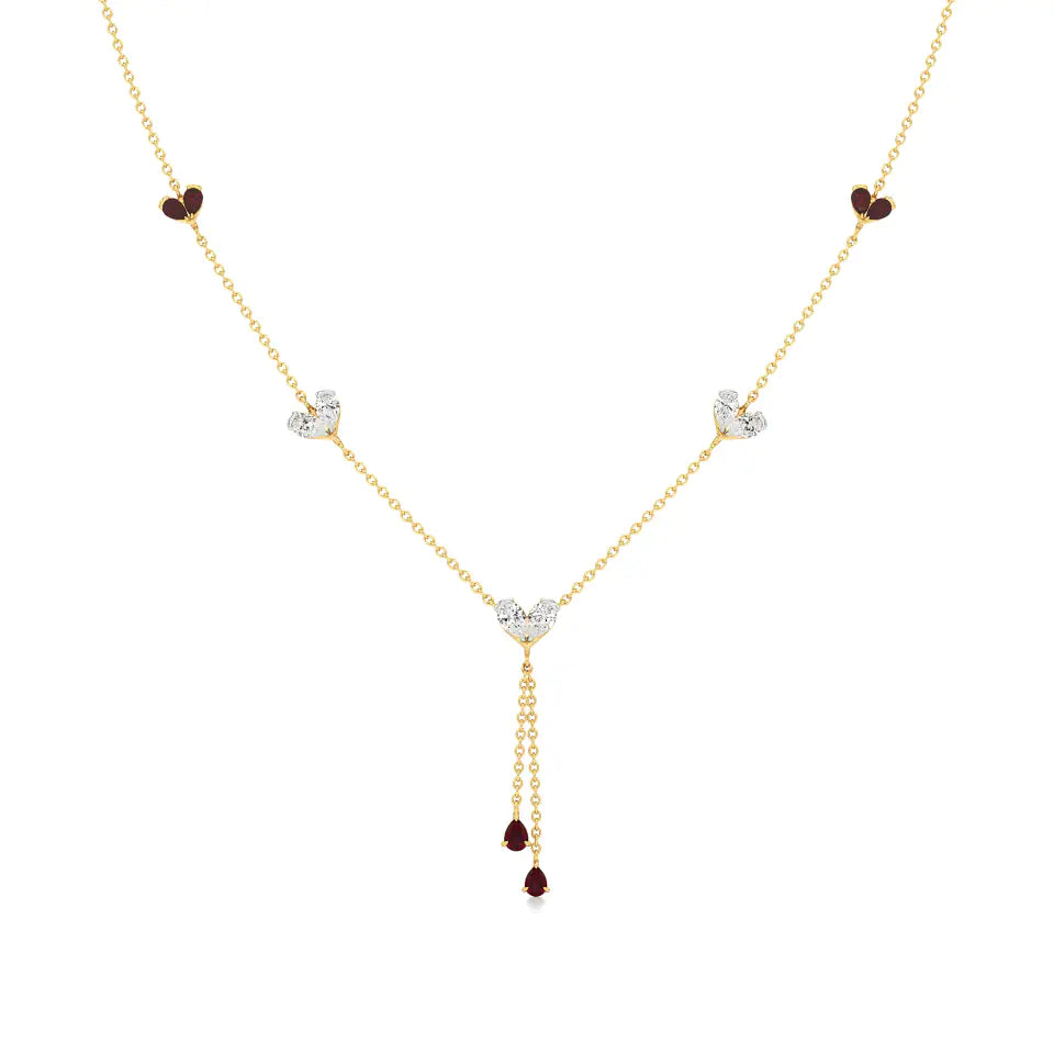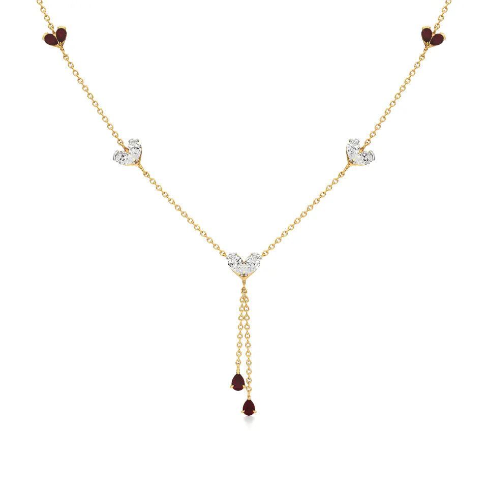 Sneh | Pear-Cut Ruby & Round Lab Grown Diamonds with Heart Motif Necklace - Buy Lab Grown Diamond Jewellery Online in India