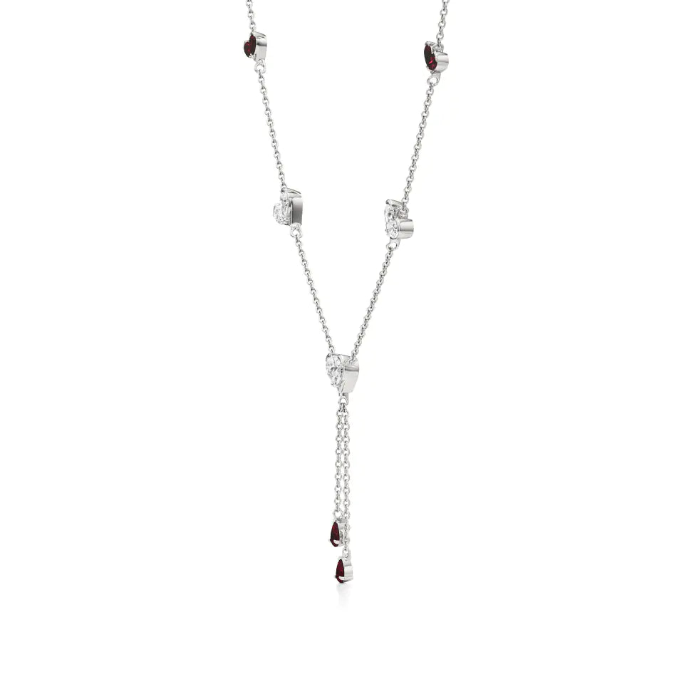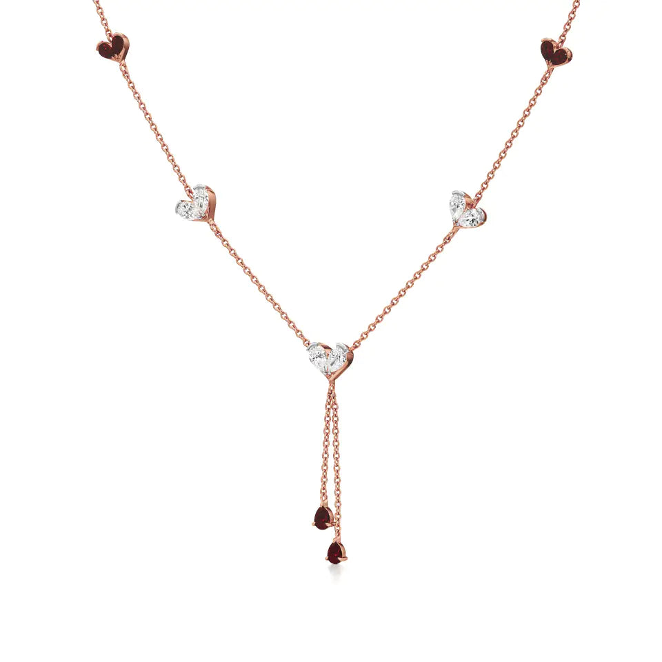 Sneh | Pear-Cut Ruby & Round Lab Grown Diamonds with Heart Motif Necklace